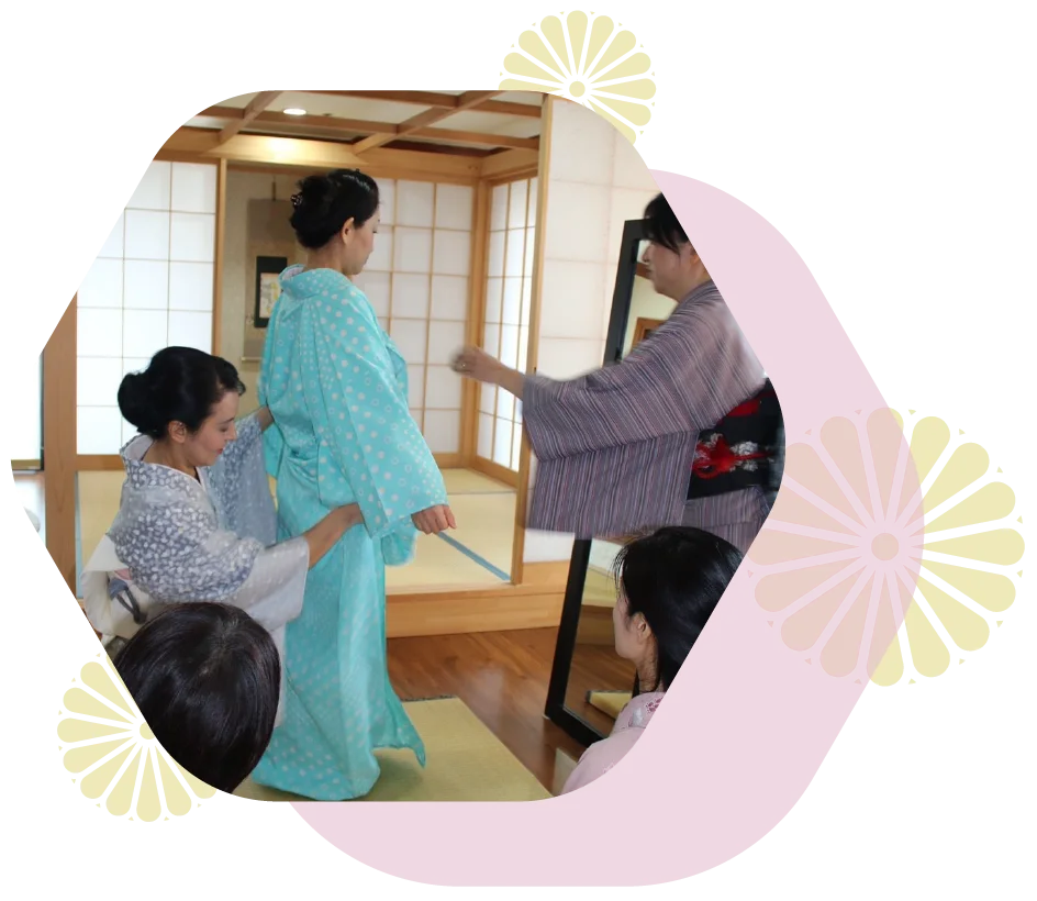 着物を全く着たことのない方や、以前に着付けを習ったけれど忘れてしまったという方もいらっしゃるアットホームな着付け教室です。また、誰かに着付けてみたい他装を習いたいという方にも対応した幅広いお稽古をご用意しております。 お稽古では、その方にあったペースで丁寧な指導を受けられるので安心です。