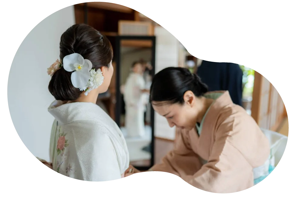 ホテルやご自宅に伺う出張着付けは、時間も気持ちもゆったりしていただけます。