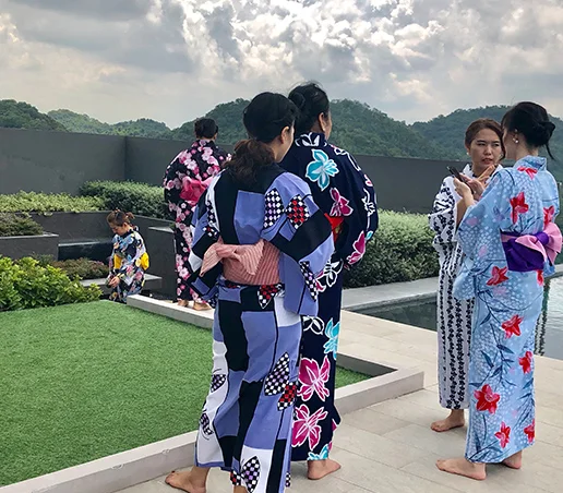 If you wish to attend a Thai wedding, formal party or international event with Kimono in Bangkok, we will coordinate and assist you in selecting a Kimono & Obi depends on your needs.